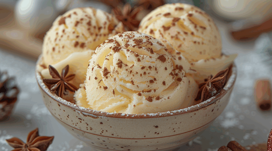 Apfel-Sorbet mit Zimt ist eine klassische Kombination, die sich hervorragend für die Weihnachtszeit eignet. Aber auch andere Gewürze wie Nelke, Kardamom, Wacholderbeere und Sternanis können kombiniert werden.